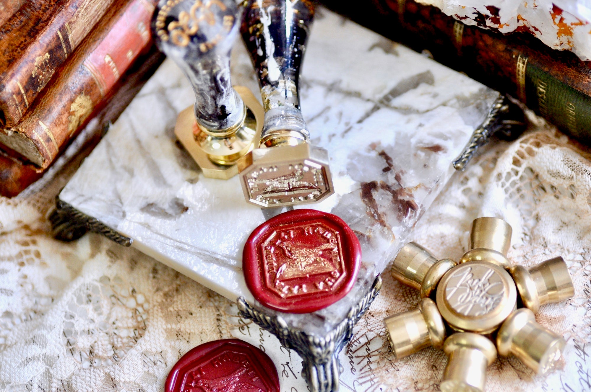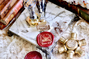 Our wax seal stamp is made with brass and comes with our complimentary signature handle in your color of choice (subject to availability, see important note for details).