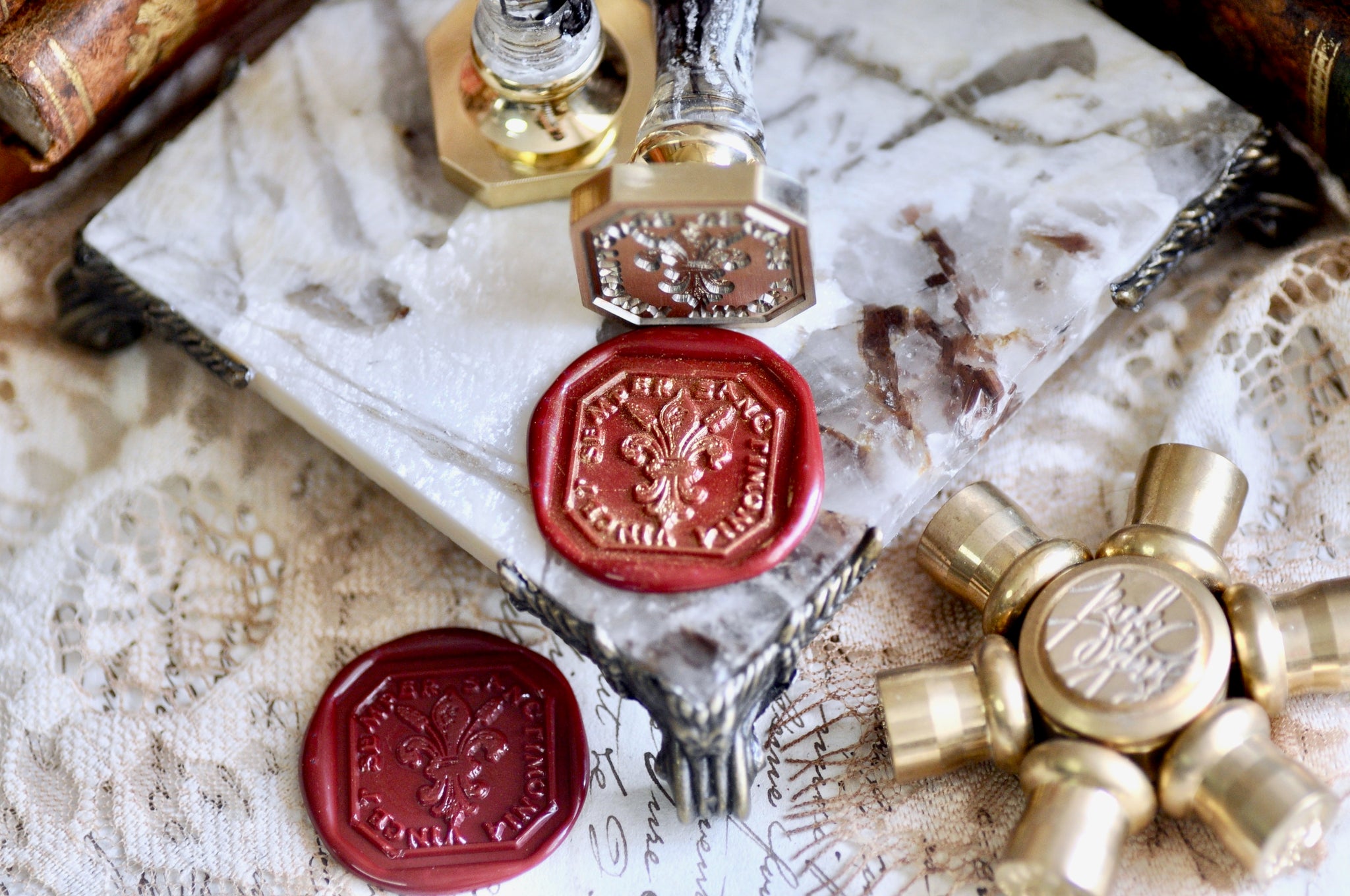Our wax seal stamp is made with brass and comes with our complimentary signature handle in your color of choice (subject to availability, see important note for details).