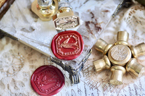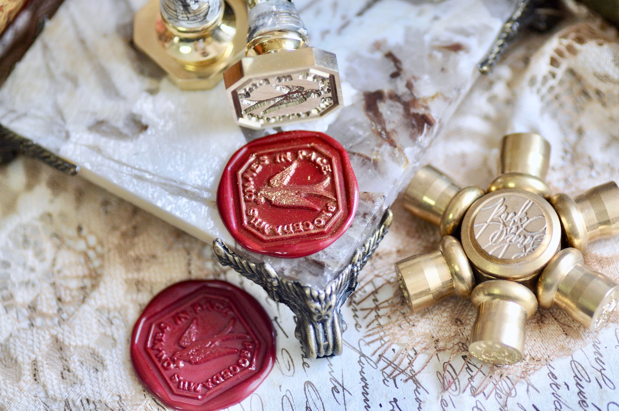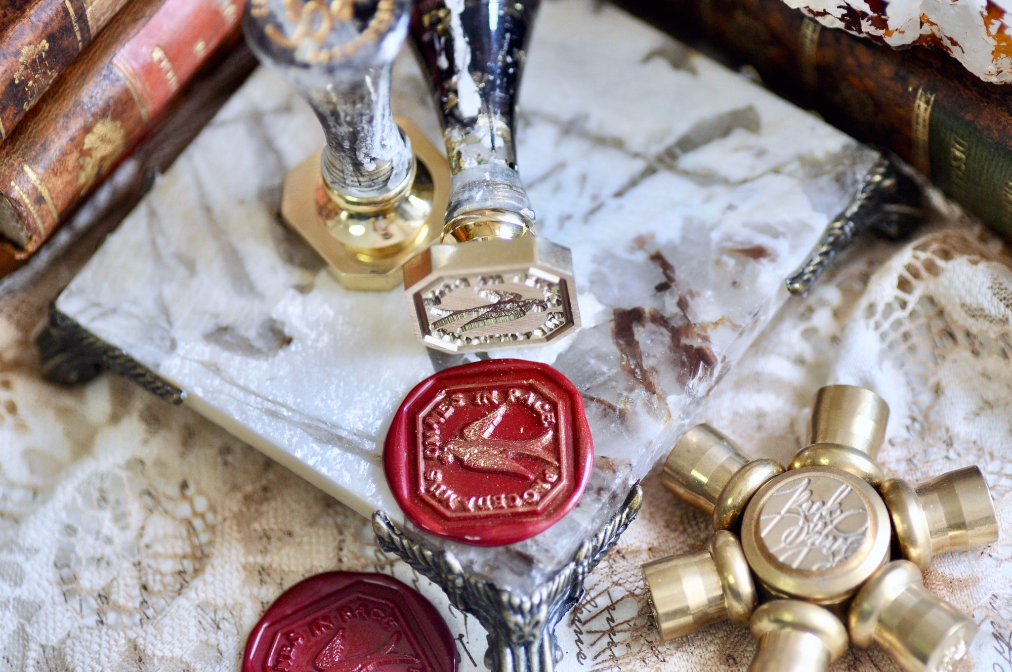 Our wax seal stamp is made with brass and comes with our complimentary signature handle in your color of choice (subject to availability, see important note for details).