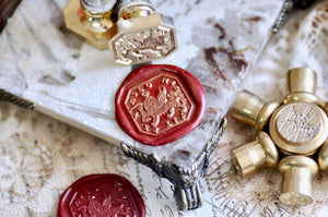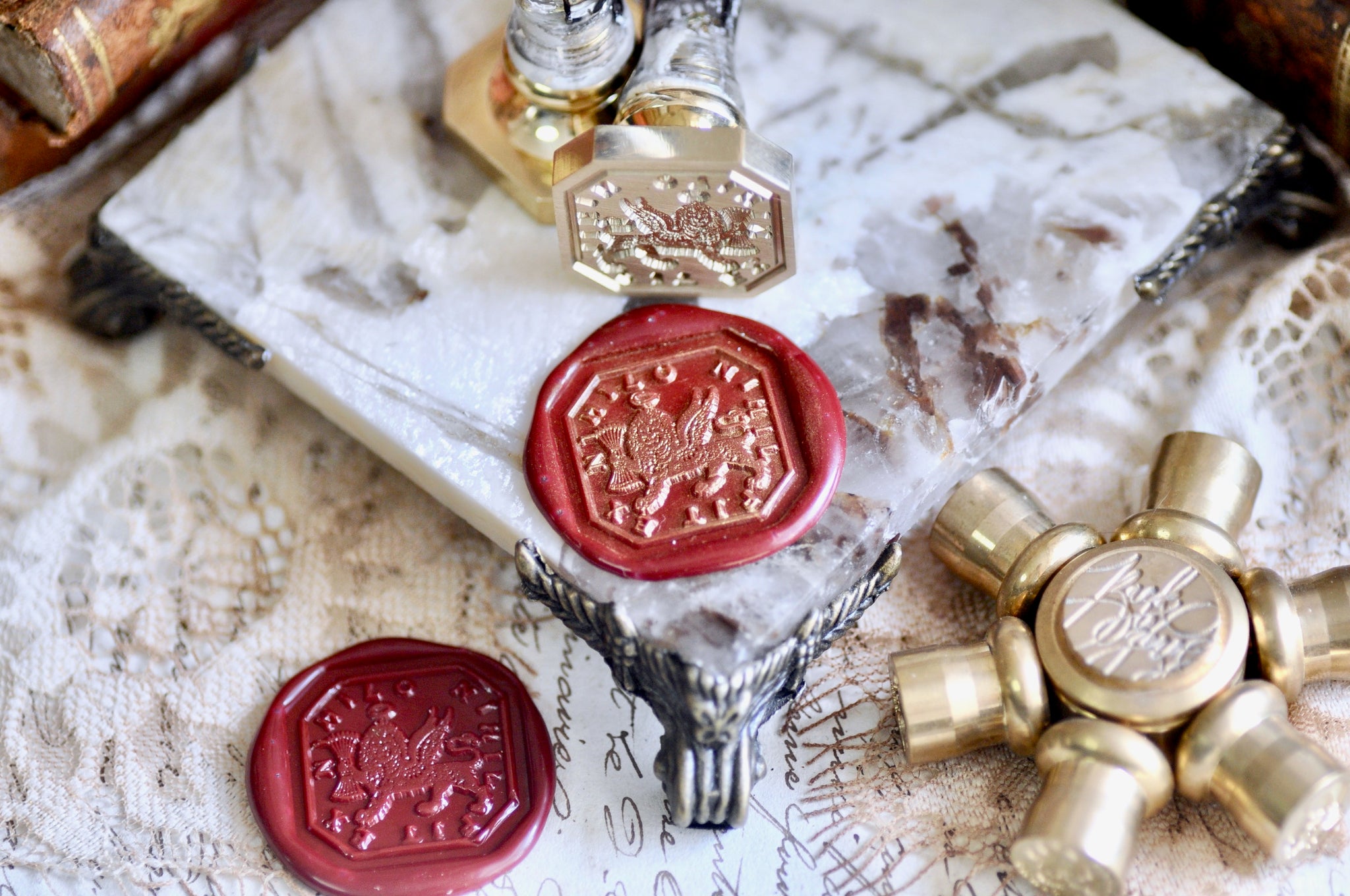 Our wax seal stamp is made with brass and comes with our complimentary signature handle in your color of choice (subject to availability, see important note for details).